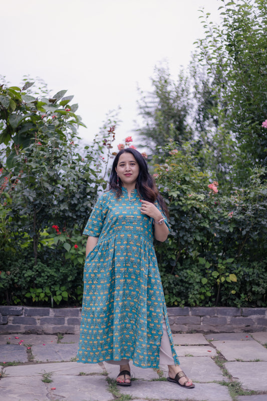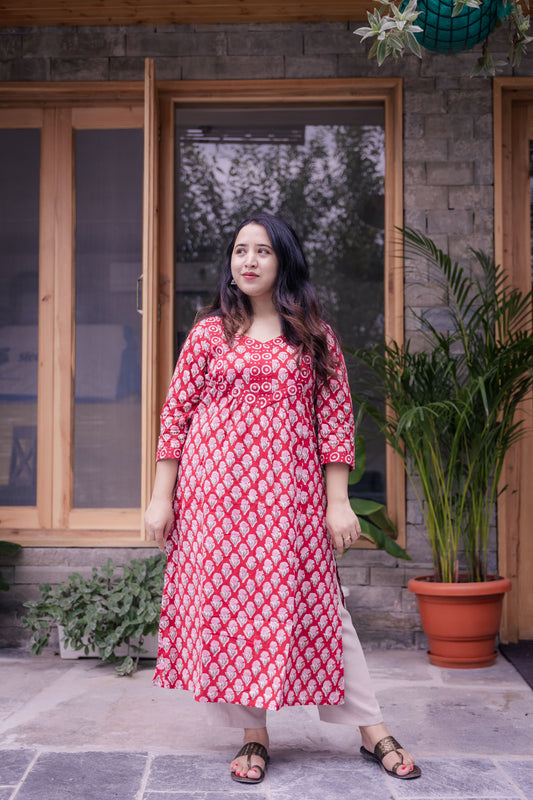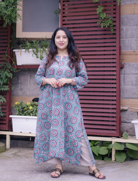 Drishti Ajrakh Handblock Angrakha Cotton Kurta
