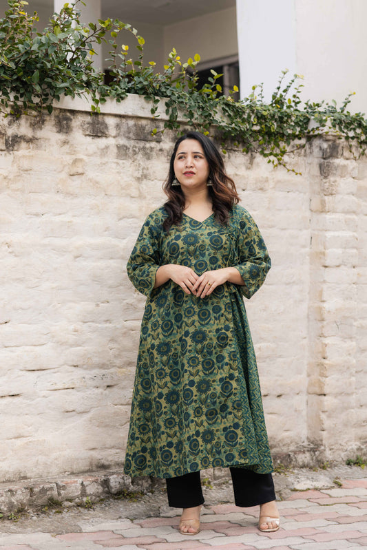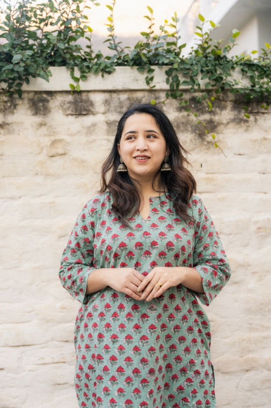 • Arvi Sanganeri Printed  A-line Cotton kurta