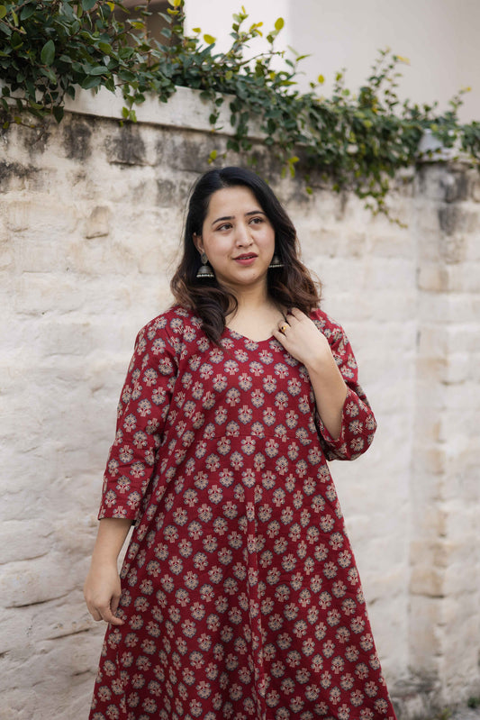 Drishti Ajrakh Handblock Angrakha Cotton Kurta