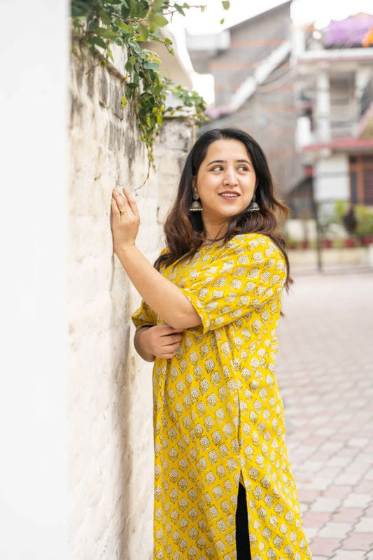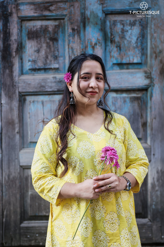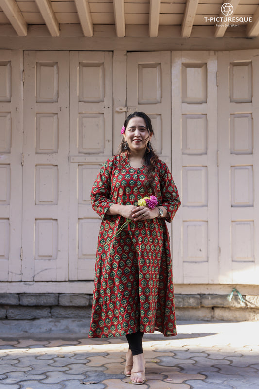 shivani Bagru A-line long kurta
